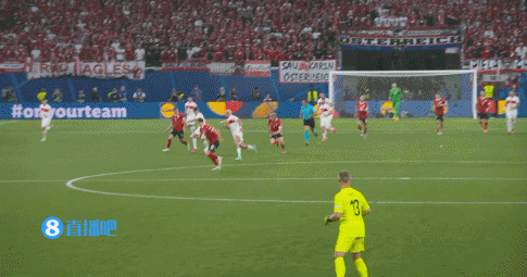 欧洲杯1/8总决赛 奥地利对阵土耳其,居莱尔带球后尝试中圈吊射,偏出了端线 ↓