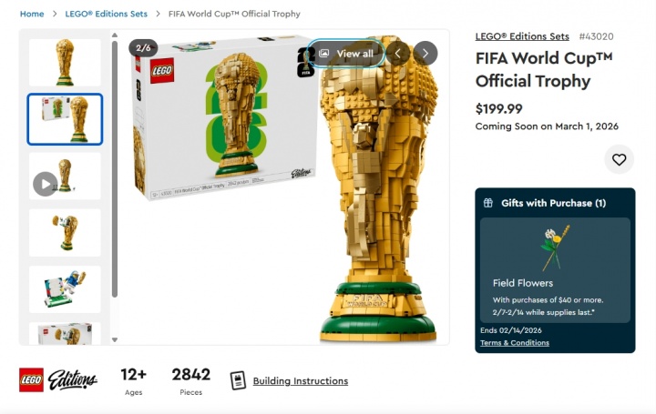 FIFA协同 乐高推出1:1复刻大力神杯,预售价199.99美元💰