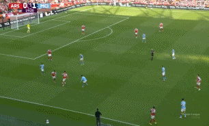 第9分钟,曼城后场得球快速策动攻击 ,哈兰德分球,赖因德斯持球一路推进,随后又斜传给快速前插的哈兰德,后者危险区域 内几乎单刀赴会球机会,一脚低射洞穿拉亚十指关,曼城1-0阿森纳。↓