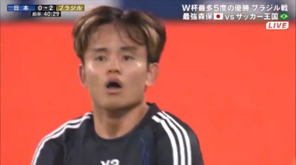 10月14日讯 国际友情 赛麒麟应战 杯,日本队主场作战 迎战巴西队。赛事 第40分钟,久保建英在巴西危险区域 内倒地,英超直播韩国裁判 没有表示,久保建英感到非常困惑。