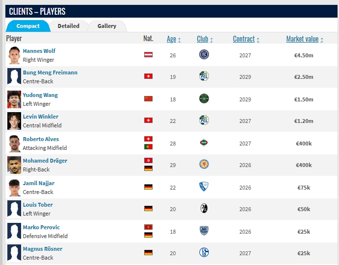德转显示该公司目前旗下的球员: