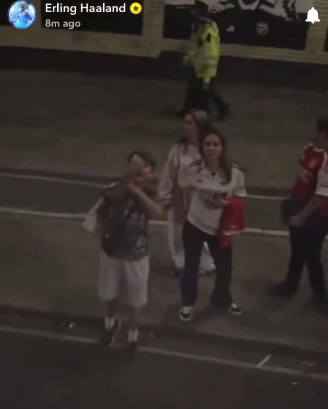 赛后,哈兰德在个人社媒snapchat晒出被阿森纳球迷辱骂的视频,英超直播看着车外的球迷辱骂做出不雅手势时,正在录视频的哈兰德看笑了。