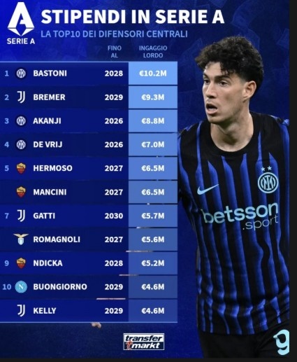 9月26日讯 德国转会市场盘点了意甲中卫税前薪资情况,国米的巴斯托尼以1020万年薪居首,英超直播在线高清(无插件)尤文的布雷默以930万欧元年薪位居次席。值得一提的是,国米新援阿坎吉以880万欧元位居第三位。