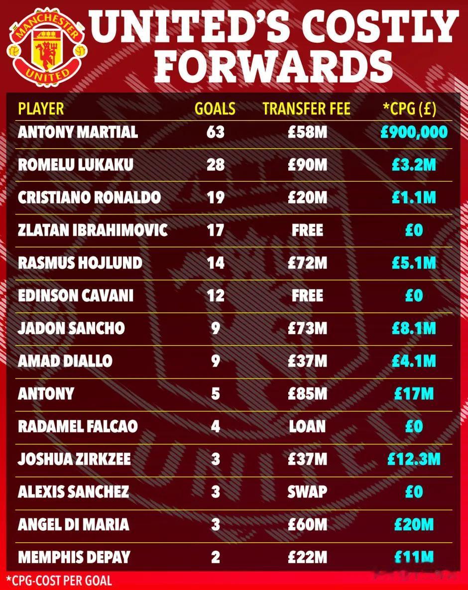 也就是说,每个得分 价值1700万英镑。曼联目前正急于在转会窗关闭前将其清理。