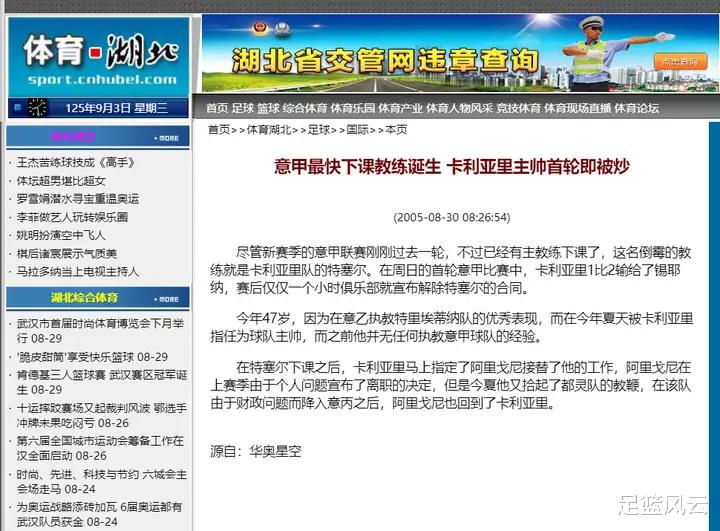 还有一个很久的新闻,2005年的卡利亚里指导教练员特塞尔。他更惨,首轮输给锡耶纳队就被炒掉了。也是夏天刚来卡利亚里没多久,时间的话也是不到几个月。