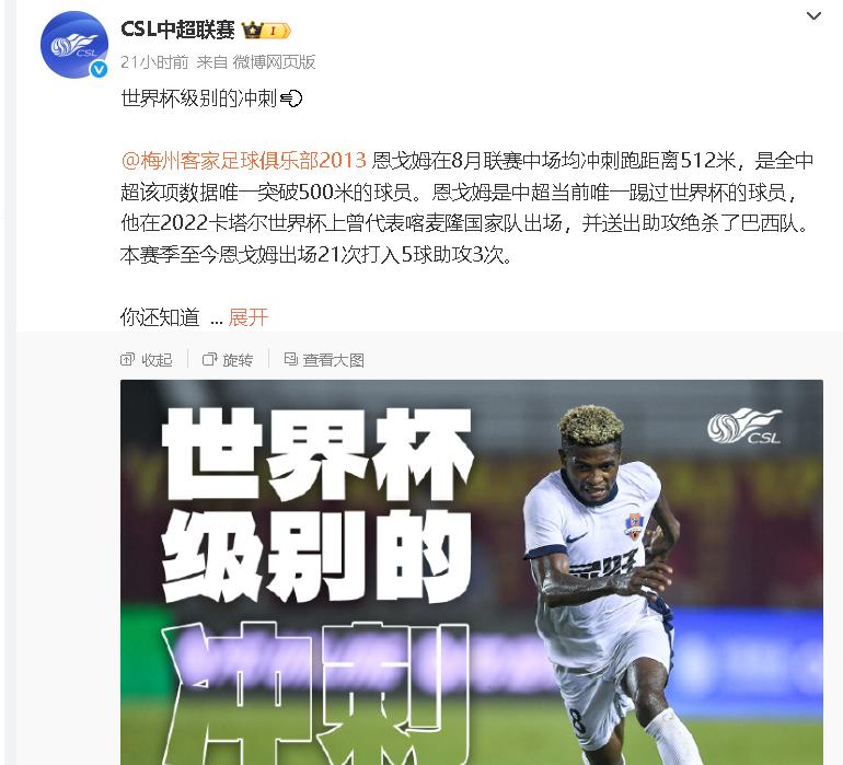 与本土球员都在300米以下相比,这就是差距,我们的球员都在踢养生古代足球 ,可是他却在全场快跑 ,每场多跑1个足运动活动 场 的长度,当其他外援散步回防时,恩戈姆在疯狂逼抢,当队友摊手抱怨时,他在用冲刺跑 撕开对方防线,这就是差距,你能说恩戈姆的表现不受到尊重吗?本赛季5球3助的数据……这些都不是重点!重点是他用行动告诉中国古代足球 :想变强,先学会“玩命”! 别只盯着外援的名气看了!下次恩戈姆再次冲刺跑 时,请为他鼓掌——因为他跑的每一步,都是在给中超注入“血性”! 你还知道哪些“国家队级”中超外援?