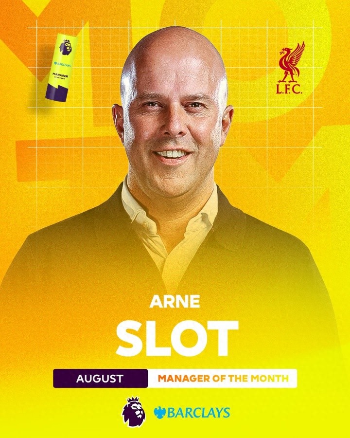 8月份三场赛事 ,斯洛特带领利物浦4-2伯恩茅斯、3-2纽卡、1-0阿森纳,取得三战全胜,领跑英超积分榜。