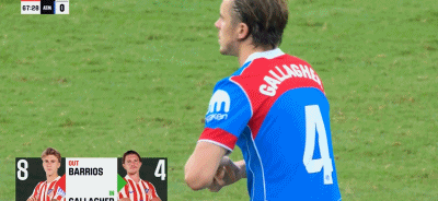 第68分钟,马竞再替换队员 ,巴里奥斯被换下,换上加拉格尔