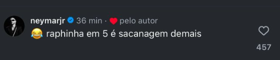 内马尔在个人社媒写道:“拉菲尼亚金球奖只排第五?这太可笑了。”