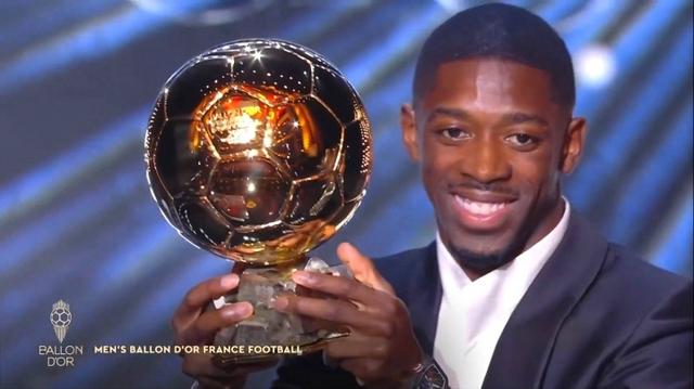 罗纳尔迪尼奥宣布登贝莱荣膺今年金球奖,现场顿时掌声雷动,首次获得提名就成为了金球奖得主!