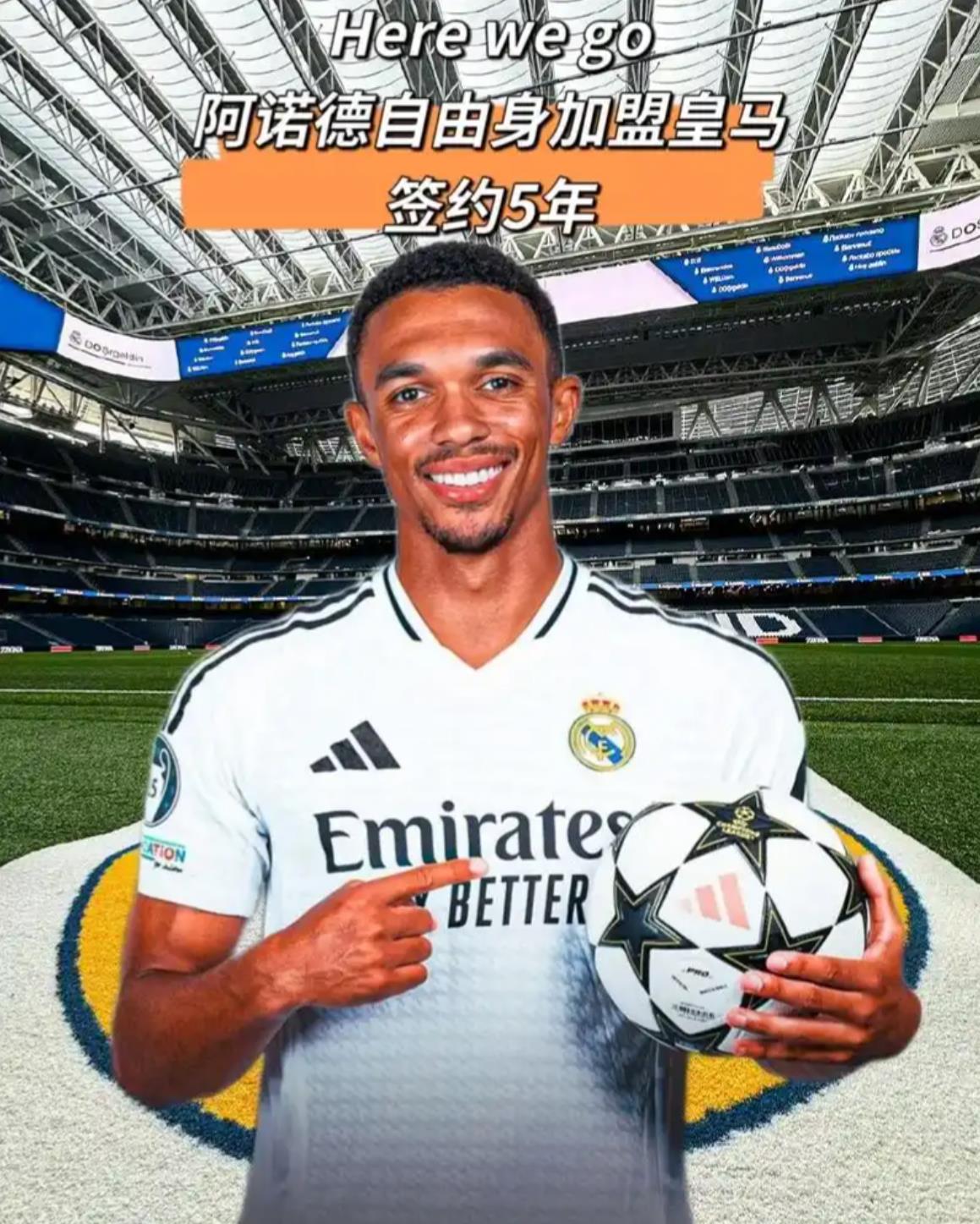 阿诺德1000万欧:皇马为这位功勋右后场球员支付的实际金额远超预期,利物浦借此释放了每年1200万欧元的薪资压力。