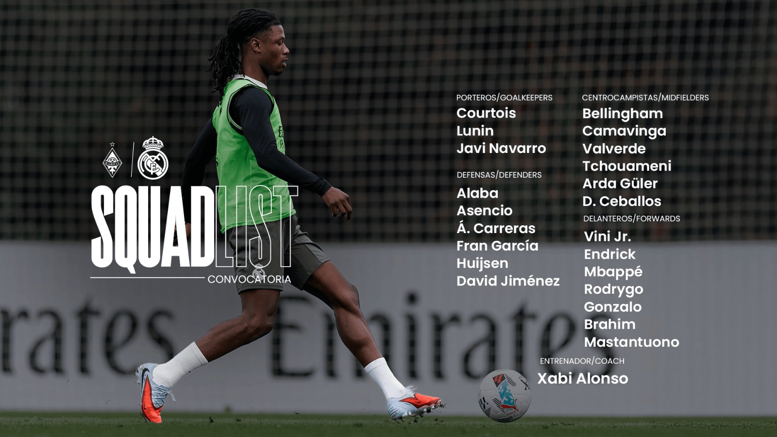 虎扑09月28日讯北京时间10月1日凌晨0时45分,2025-26赛季欧冠职业联赛 阶段第2轮,英超免费高清直播皇家马德里做客阿拉木图应战 凯拉特。赛前皇马公布了本场赛事 出征阿拉木图的大名单。