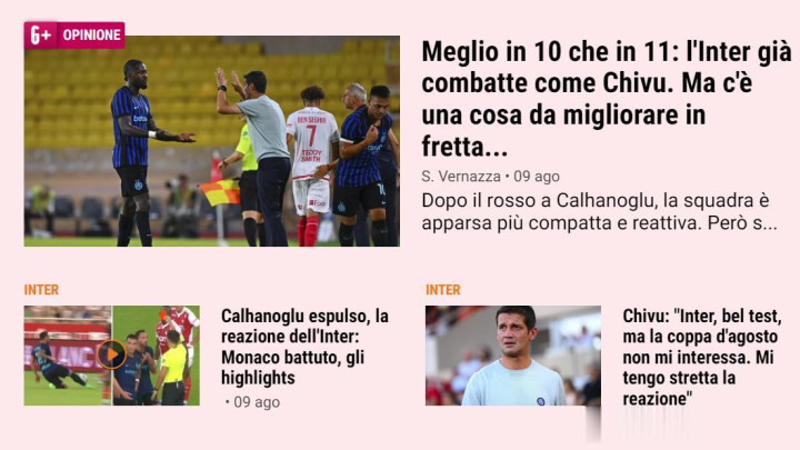 国米2-1击败摩纳哥的赛事 后,《米兰体育报》撰文指出“10人作战的国米反而取得反转 ,这证明齐沃统率的球队已经有了战斗气质。然而球队有一个问题必须率先解决,这就是防卫 。”