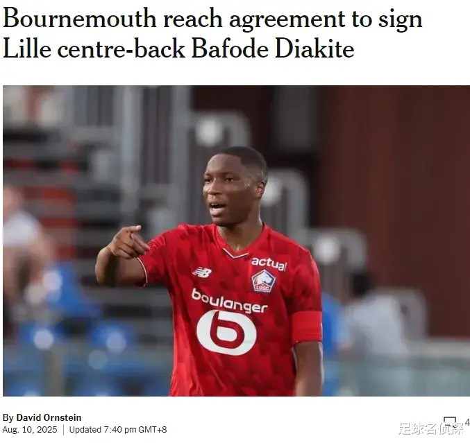 TA记者DO消息,巴福德-迪亚基特周日在伦敦参加了体检,之后他将完成从里尔加盟伯恩茅斯的转会。