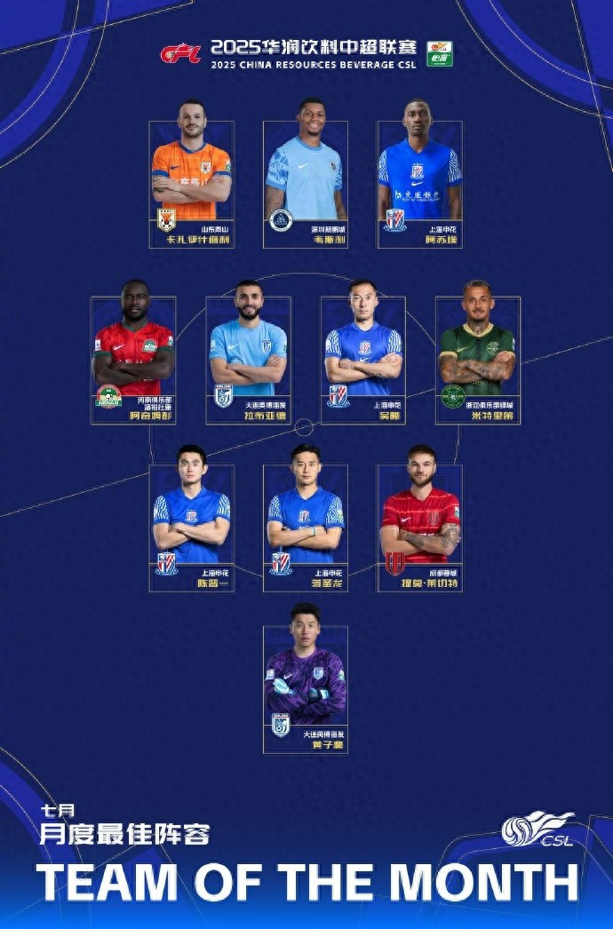 直播吧8月15日讯 中超官方公布7月最佳阵形 名单,本次最佳阵形 采用3-4-3阵形 ,卡扎伊什维利、米特里策在列,吴曦、阿奇姆彭入围。