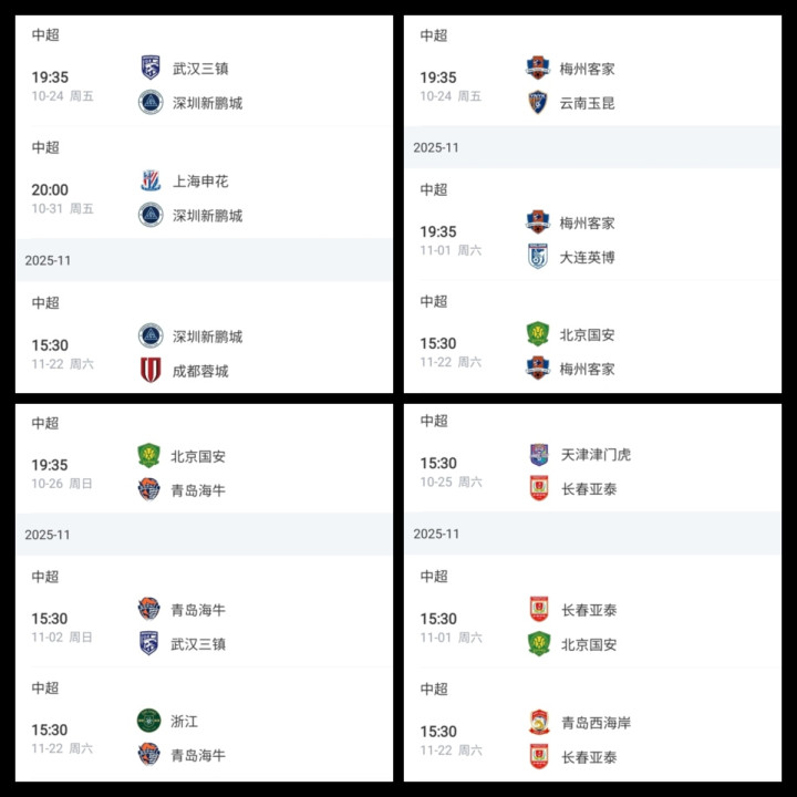 深圳新鹏城、梅州客家、青岛海牛、长春亚泰最后3轮赛程