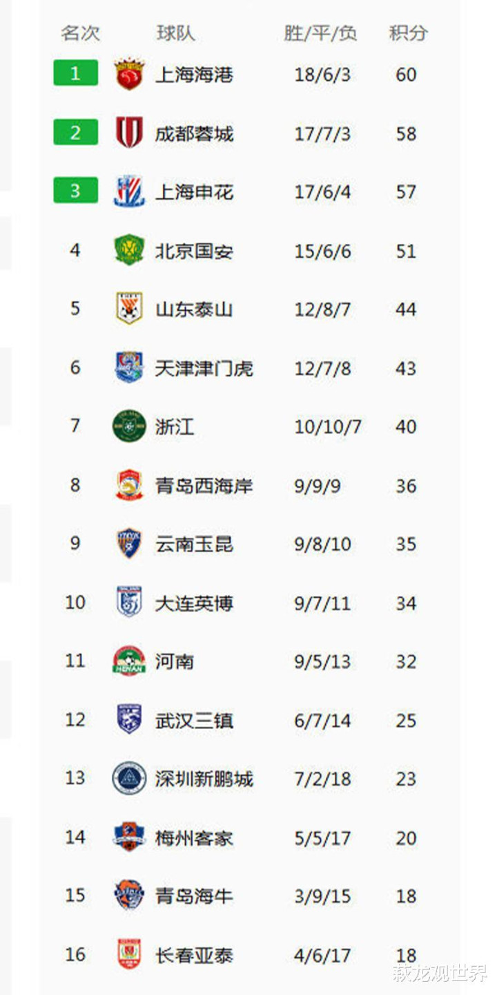 最终河南队2-0战胜长春亚泰,全取三分后,积32分,排名第11位,长春亚泰积分停滞在了18分,继续垫底。本轮深圳新鹏城2-1击败国安,积23分,进一步远离降级区。梅州客家、青岛海牛本轮都输球了,亚泰没有和他们进一步扩大分差,保级悬念还在。