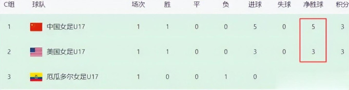 此次中国女足几乎没有给对手机会,获得了5个净胜球,凭借这一佳绩,中国队也成功跨越 3-0获胜的美国女足,在小组排名中脱颖而出,目前暂列榜首。