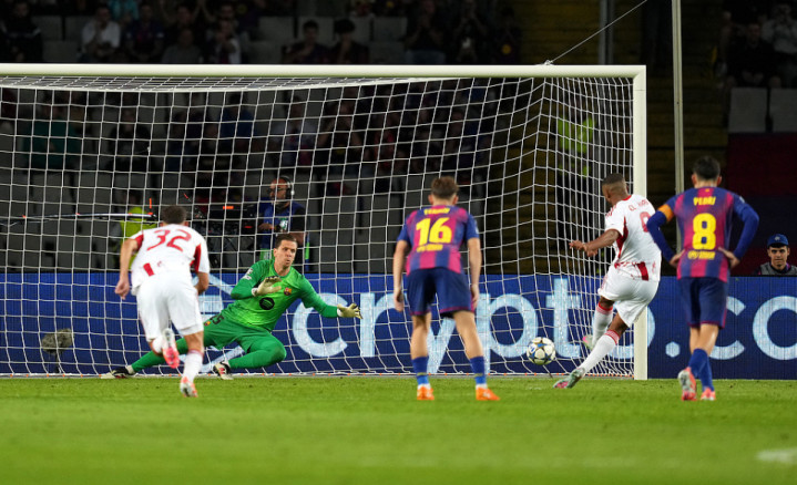 2025-2026赛季欧冠,巴萨VS奥林匹亚科斯,比分是6比1,巴萨大获全胜,但还是有丢球。本赛季开始以来,什琴斯尼代表巴萨出场5次,丢9球。