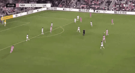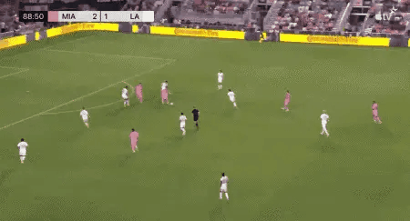 第59分钟,帕伦特助功 ,潘特利尔出色 冲破 危险区域 左侧小角度推射破门,洛杉矶银河扳平比分,1-1。形势对迈阿密国际逐渐不利。但关键时刻,球王开始发威了!