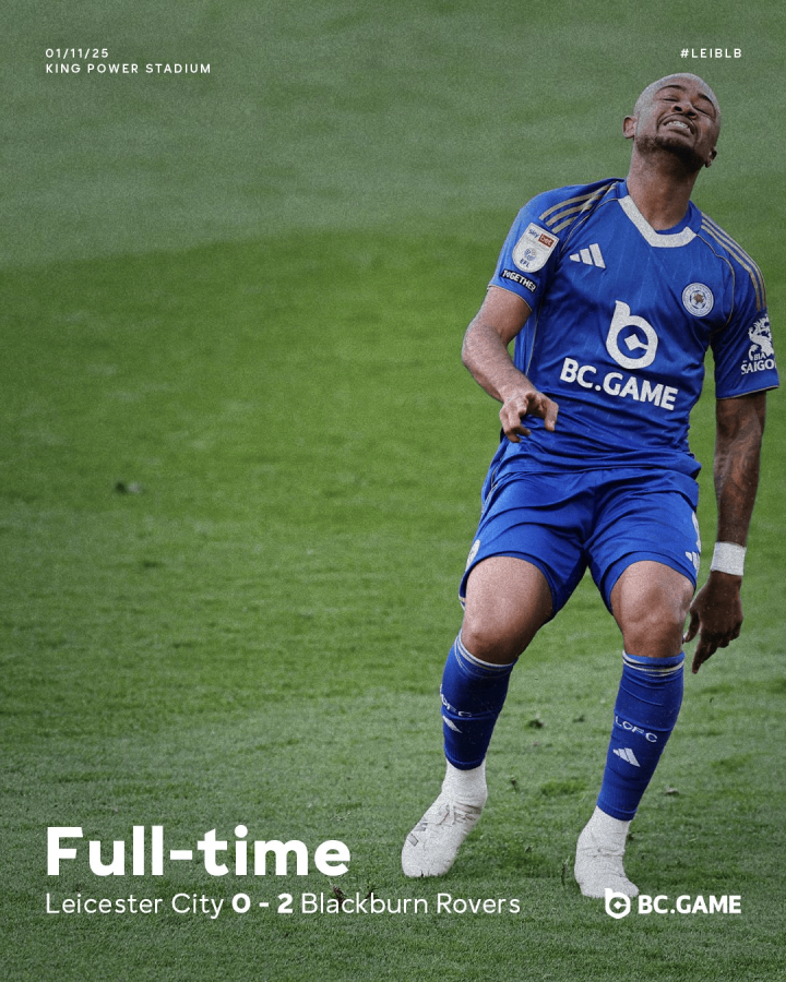 虎扑11月01日讯在不久前结束的一场英冠第13轮的赛事 中,莱斯特城坐镇主场作战 被古德约翰森的儿子安德里打入两球,0-2输给来访的布莱克本。
